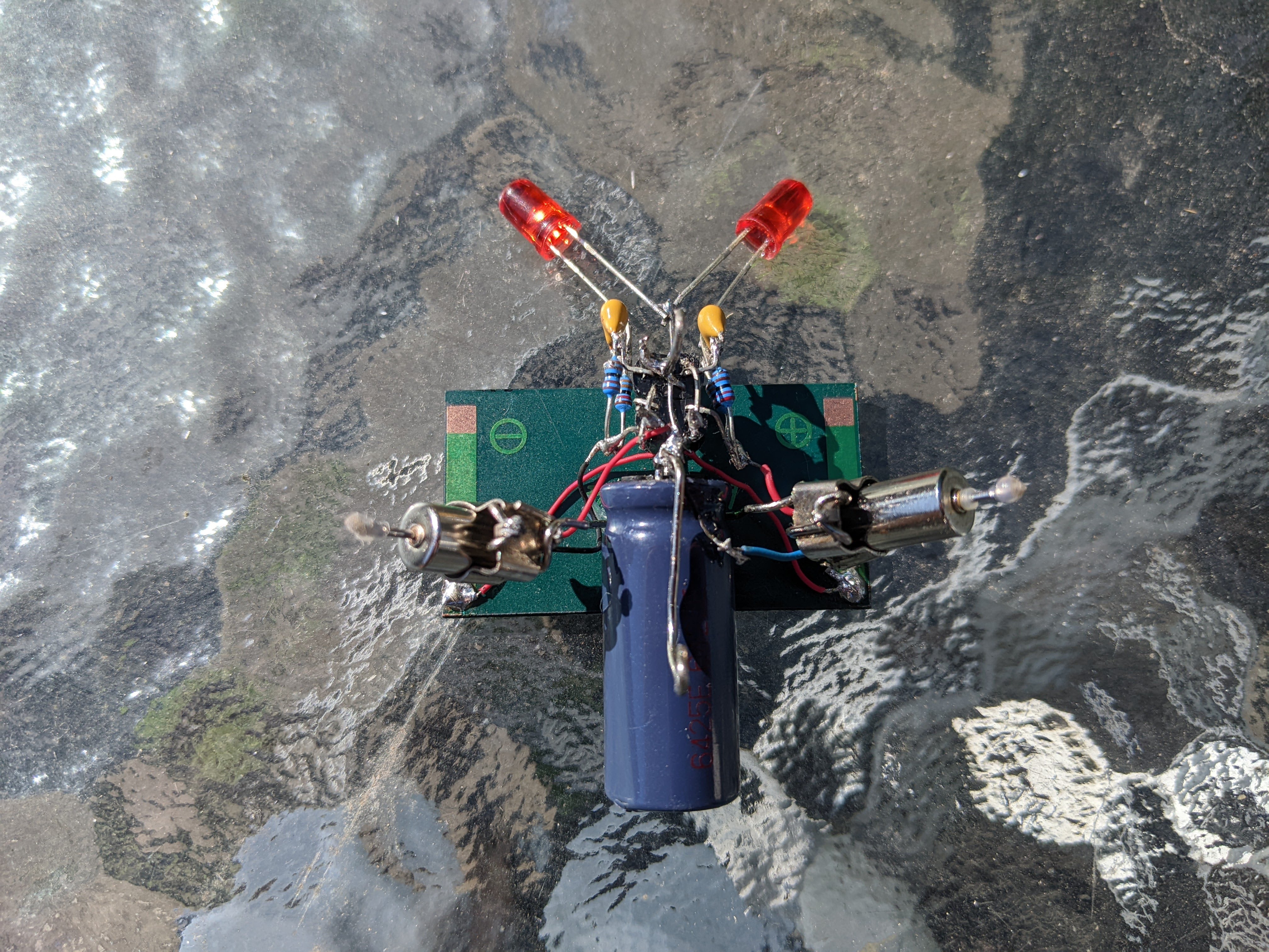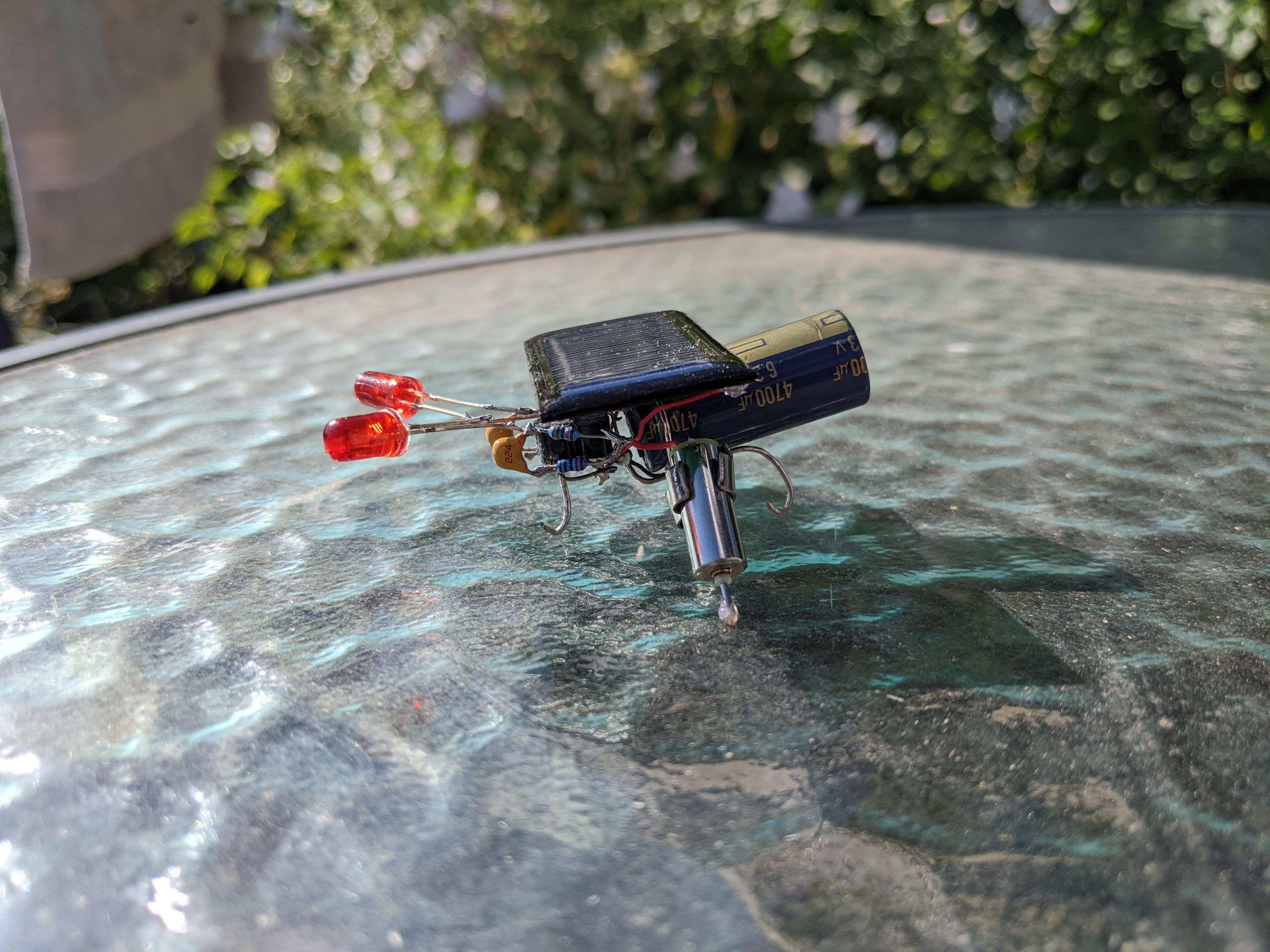 For this design, I followed Ray's tutorial to freeform the solar engine, resulting in a very neat and compact circuit. I did have some trouble with this design however - it didn't seem to like any of my motors.